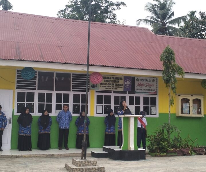Oplus_131072Bariang Rao-Rao, Humas — Pagi ini, MTsN 5 Solok Selatan melaksanakan upacara rutin setiap Hari Senin yang sekaligus dirangkai dengan peringatan Hari Pahlawan Nasional Tahun 2025. Upacara dilaksanakan di halaman madrasah dengan Yenti Elfina, S.Pd.I bertindak sebagai inspektur upacara.
