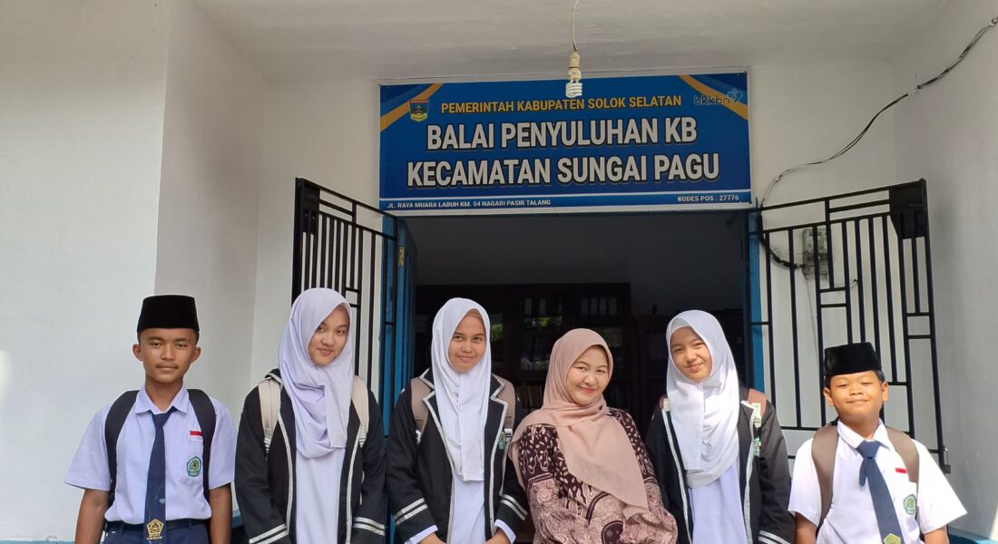 Lima orang siswa MTsN 5 Solok Selatan bersama Guru Bimbingan Konseling, Nahdia Nelpita, S.Pd, mengikuti kegiatan Pusat Informasi dan Konseling Remaja (PIK-R) yang diselenggarakan di Balai Penyuluh KB Kecamatan Sungai Pagu, Selasa, 14 Oktober 2025.